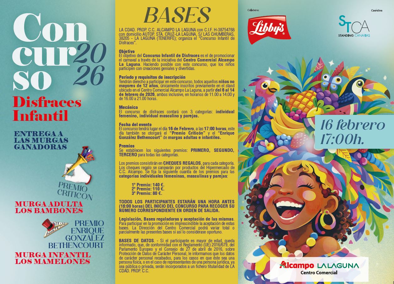 Este 16 de febrero a las 17:00 h, celebramos en CC Alcampo La Laguna el Concurso Infantil de Disfraces 2026, una tarde llena de color, creatividad y muchísima ilusión.